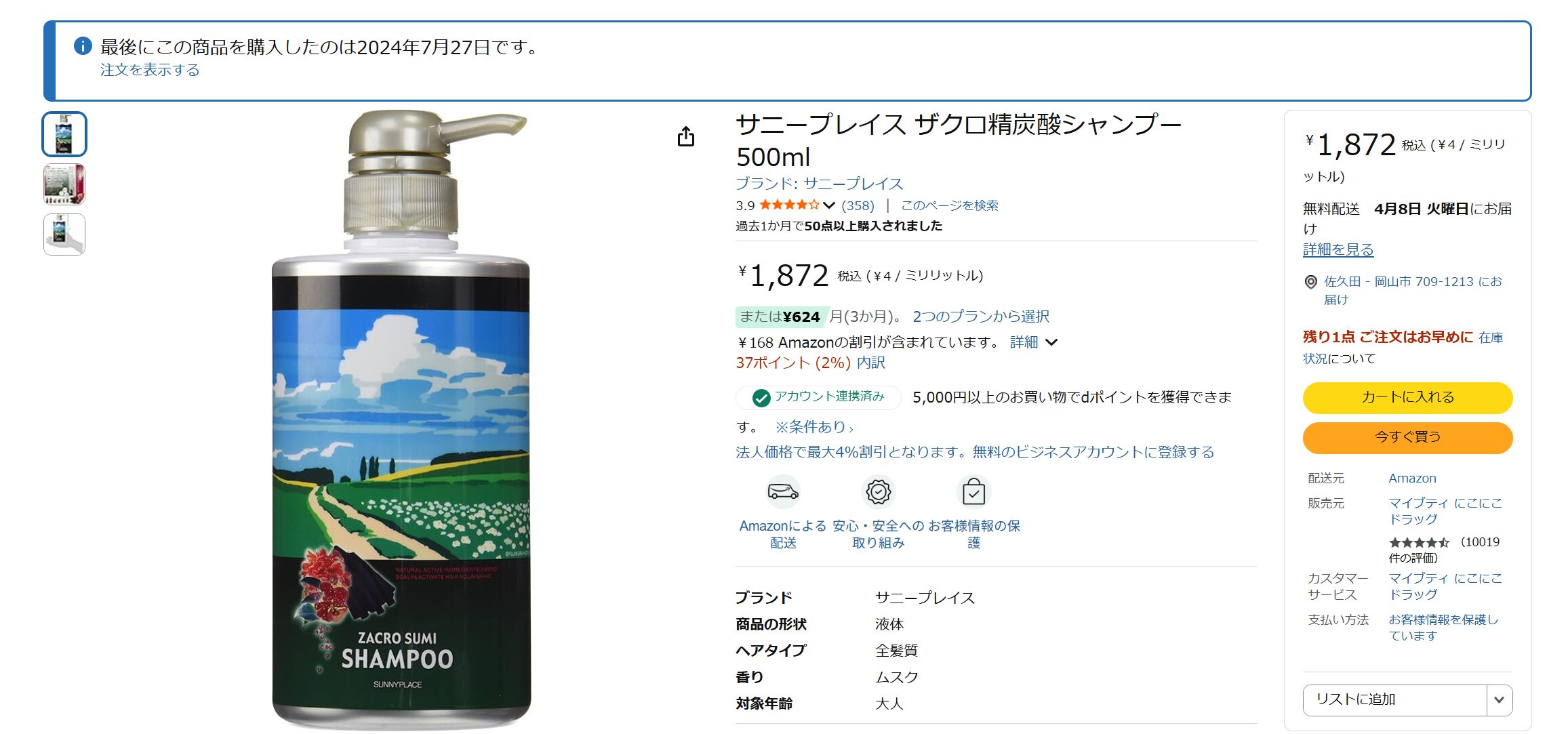 とある解析サイトで高評価を得ていたサニープレイスの「ザクロ精炭酸シャンプー」を試してみた。